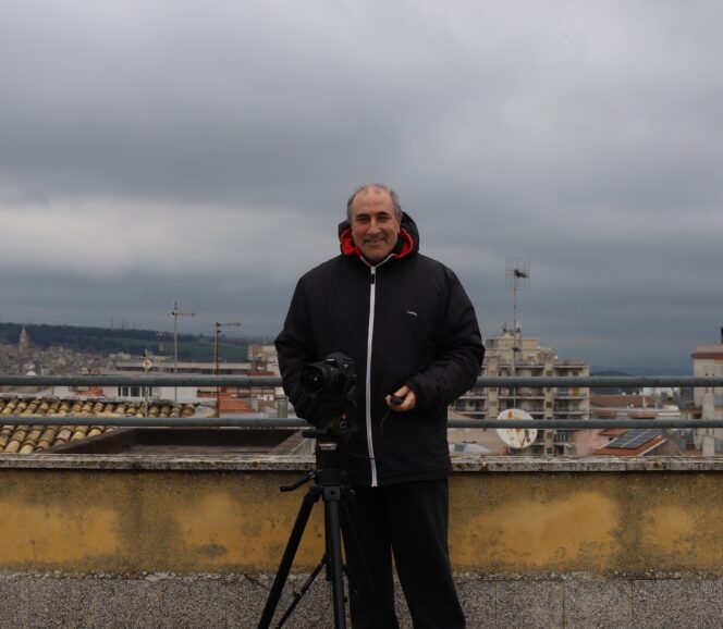 L’astrofotografo Gianni Tumino sul terrazzo dal quale ha scattato la foto “Stars Trail over Ragusa”