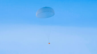 Lo spiegamento del paracadute di 35m della prossima missione ExoMars è stato sottoposto a un test di lancio a bassa quota all’inizio di maggio. Crediti: Esa/I. Barel