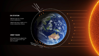 La visiera permetterà di diminuire la luminosità del satellite nell’orbita operativa ma, non oscurando di fatto il retro del pannello solare, non riuscirà a diminuire la sua luminosità durante la fase di innalzamento dell’orbita e quando si trova nell’orbita di parcheggio. Per questo motivo, SpaceX si sta attivando per cambiare l’assetto del satellite dall’inserimento nell’orbita di parcheggio a quella operativa. Attualmente SpaceX sta testando manovre di rollio del satellite in modo che la direzione del Sole sia quella del piano del corpo del satellite, con il satellite messo di taglio, rispetto al Sole. Ciò ridurrebbe la luce riflessa sulla Terra, riducendo di fatto la superficie del satellite che viene investita dalla luce del Sole. È possibile farlo mentre il satellite si sta innalzando e durante l’orbita di parcheggio perché in questi casi non è necessario puntare le antenne al nadir per fornire copertura Internet agli utenti.