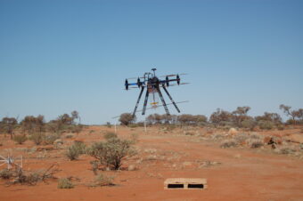 Il drone Unmanned Air Vehicle usato al sito australiano durante la campagna di misure in giugno 2019. Crediti Inaf & Cnr