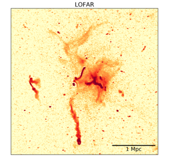 Per gli astrofisici, gli aloni radio sono ancora un enigma: l’ipotesi più accreditata sulla loro origine è che essi si formino a causa di moti turbolenti innescati all’interno degli ammassi durante le collisioni fra gli ammassi stessi. Proprio in questo ambito le nuove osservazioni potrebbero fornire indicazioni preziose. «I filamenti scoperti da Lofar potrebbero formarsi proprio a opera di questi moti, un po’ come quelle strutture filamentose che scorgiamo all’interno delle nuvole nelle giornate con molto vento» commenta Gianfranco Brunetti dell’Inaf di Bologna, che coordina le ricerche sugli ammassi all’interno della collaborazione internazionale Lofar. «Un’altra possibilità che stiamo vagliando è che i filamenti abbiano origine dall’interazione fra le galassie – che si muovono a velocità di molte centinaia di chilometri al secondo all’interno dell’ammasso – e il plasma che produce l’emissione radio dell’alone, un po’ come gli aerei che producono vortici turbolenti attraversando le nuvole» aggiunge Brunetti.