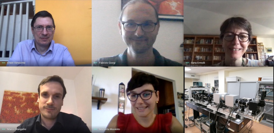Donne, uomini e strumenti protagonisti della conferma della natura magnetica dei tornado solari. Dall’alto in basso e da sinistra a destra: Erwin Verwichte, Fabrizio Giorgi, Ilaria Ermolli, Marco Stangalini, Mariarita Murabito e lo spettrometro Ibis