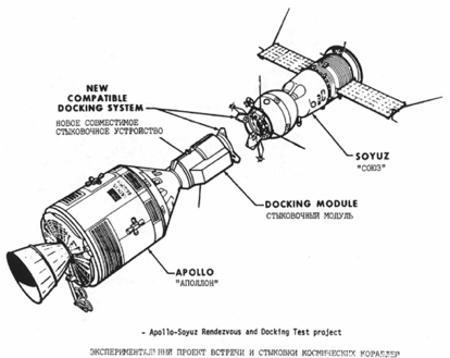 Il più spettacolare esercizio di space diplomacy fu il programma test Apollo-Sojuz (Astp, per Apollo Sojuz Test Program), prima collaborazione tra gli Stati Uniti e l’Unione Sovietica, che portò, il 17 luglio del 1975, alle 16:19 Utc, a un aggancio in orbita della navicella spaziale Apollo con la capsula Sojuz, con successivo trasferimento di equipaggi da una navicella spaziale all’altra.