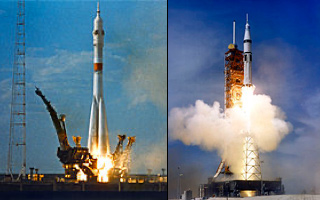 Lancio da Baikonur della capsula Soyuz e da Cape Canaveral della navicella Apollo