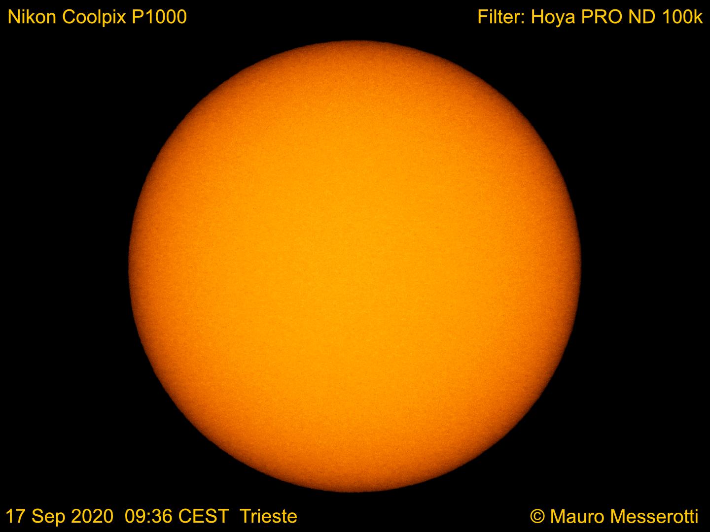 Nessuna regione attiva con macchie solari è presente sul Sole, oggi. Il Sole è privo di macchie da 27 giorni consecutivi. Diversi buchi coronali sono presenti nella corona solare, i più estesi dei quali sono localizzati ai poli solari Nord e Sud. Crediti: Mauro Messerotti