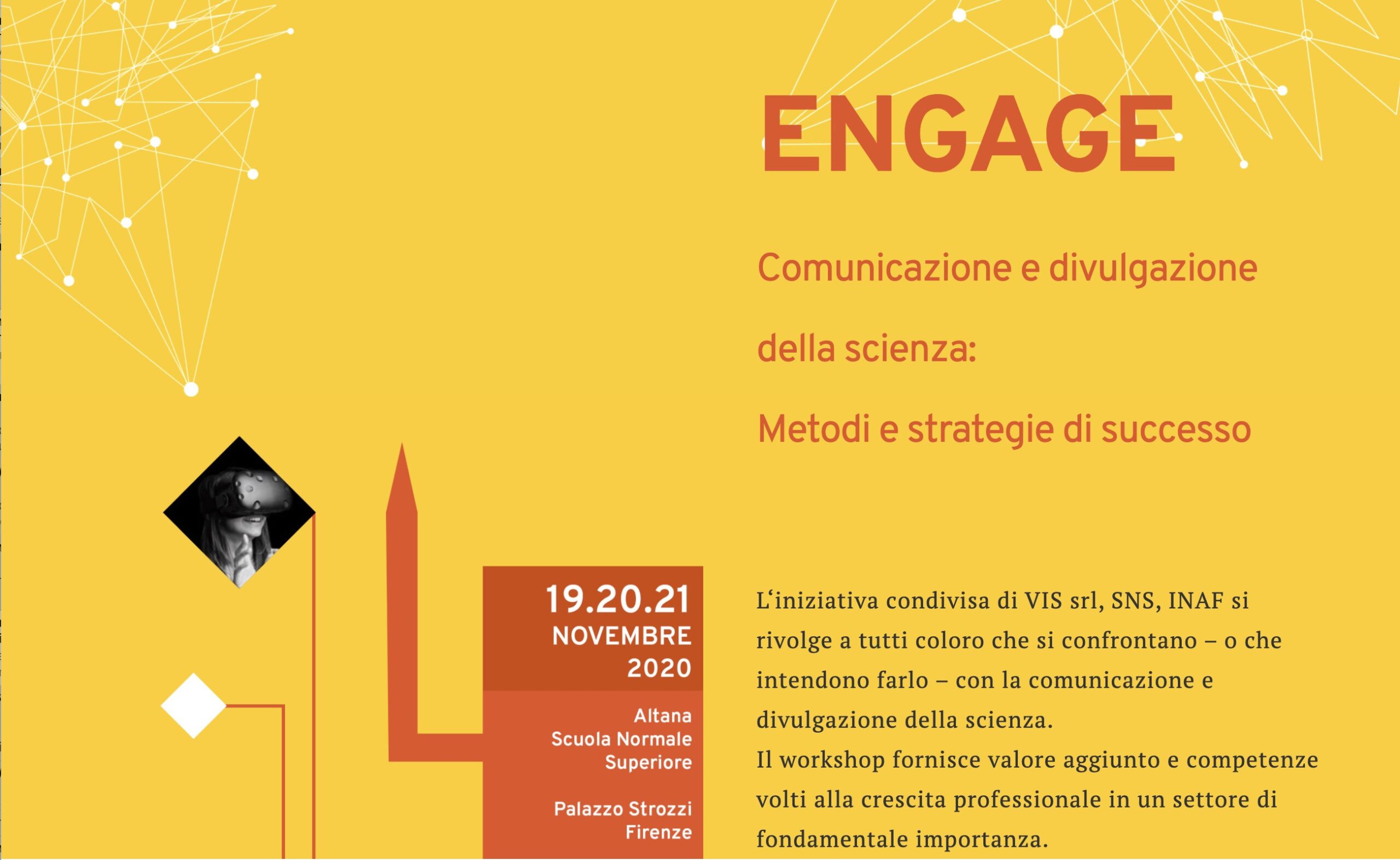 Il workshop, in collaborazione con l’Istituto nazionale di astrofisica e la Scuola Normale, si svolgerà a Firenze, al quinto piano di Palazzo Strozzi, dal 19 al 21 novembre. Le iscrizioni sono aperte fin d’ora collegandosi al sito engage.vis-sns.com. La quota per partecipare va da 800 (per chi si iscrive entro il 15 ottobre) a 1000 euro e sono ammessi fino a un massimo di 50 partecipanti.