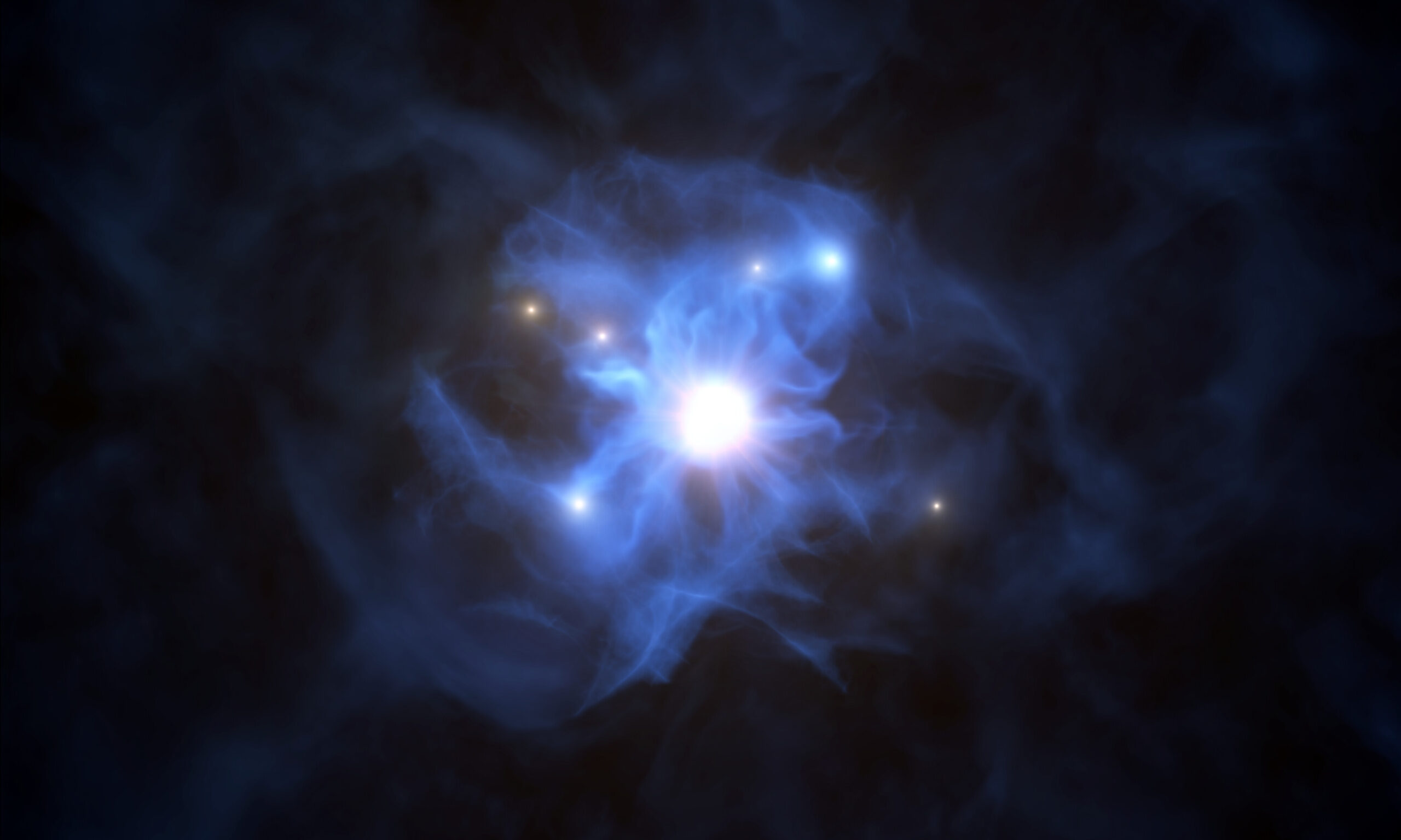 I primissimi buchi neri, che si pensa si siano formati dal collasso della prima generazione di stelle, devono essere “ingrassati” molto velocemente per raggiungere masse di un miliardo di Soli in “appena” 900 milioni di anni dal Big Bang. Ma spiegare come siano disponibili quantità sufficientemente grandi di “carburante per buchi neri” per permettere a questi oggetti di crescere fino a raggiungere dimensioni così enormi in breve tempo, è tutt’altro che semplice. La struttura appena scoperta offre una ragionevole spiegazione: le grandi quantità di gas in essa contenute possono fornire il carburante di cui il buco nero centrale ha bisogno per diventare rapidamente supermassiccio.