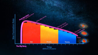 Grafico rappresentante la storia di formazione stellare cosmica dal Big Bang fino a oggi. Crediti: ICRAR.