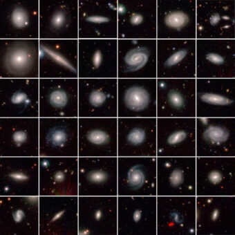 L’immagine raffigura una selezione del campione di 7000 galassie vicine osservate nello studio. Crediti: GAMA survey, ICRAR/UWA.