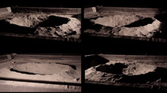 Diversi progetti di luci sono stati allestiti quindi attorno al banco di prova lunare. I ricercatori hanno simulato le condizioni di illuminazione e la composizione del terreno lunare utilizzando regolite, un materiale con proprietà riflettenti uniche generate dall’erosione spaziale – fenomeno assente sulla Terra grazie all’atmosfera e alla presenza dell’acqua. Il modo in cui la luce si riflette sulla forma frastagliata dei singoli granelli infatti, insieme all’uniformità del colore, fa sì che l’aspetto dell’ambiente appaia diverso se questo viene illuminato da direzioni diverse – perdendo di consistenza sulla visuale a diversi angoli di illuminazione.