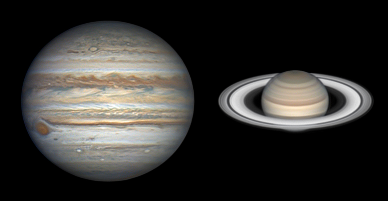 Giove e Saturno in una immagine composita che è stata la Astronomy Picture of the day (Apod) del 29 luglio 2020. Crediti e copyright: Jean-Luc Dauvergne