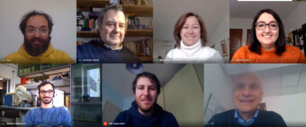 Alcuni membri del team in riunione. Da in alto a sinistra: Lorenzo Cocola, Riccardo Claudi, Nicoletta La Rocca, Eleonora Alei, Mariano Battistuzzi, Vito Squicciarini e Luca Poletto