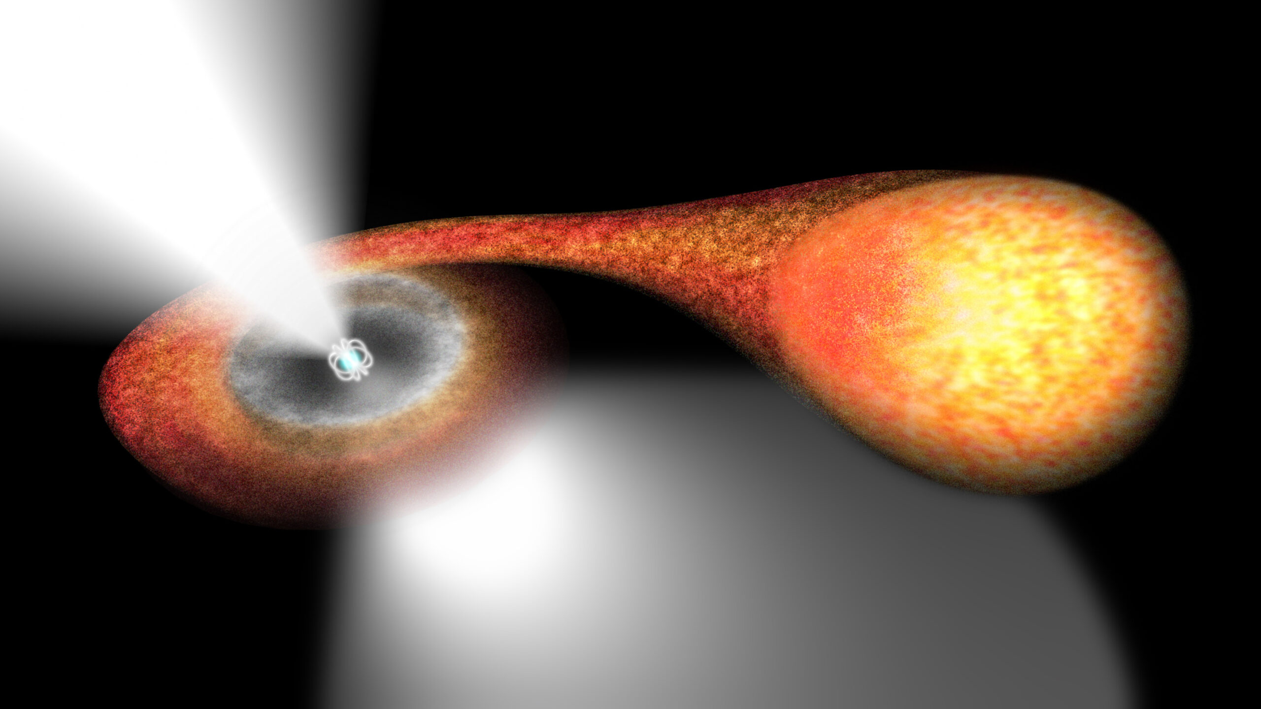 Ma le nuove osservazioni pongono un dilemma: la luminosità delle pulsazioni misurate in banda ottica e Uv è troppo elevata per essere spiegata, usando i modelli teorici esistenti, dall’accrescimento di materia sulla pulsar. «Il segnale ottico e Uv pulsato potrebbe quindi essere prodotto nella magnetosfera della pulsar, o poco lontano da essa, ed essere alimentato dalla rotazione del dipolo magnetico della pulsar», dice Miraval Zanon. «Se così fosse, potrebbero convivere o alternarsi molto rapidamente due meccanismi fisici diversi: da una parte l’accrescimento produrrebbe gli impulsi in banda X; dall’altra la pulsar, alimentata dalla sua stessa rotazione, riuscirebbe a generare impulsi in banda ottica e Uv. Questo scenario sfida gli attuali modelli teorici secondo cui un meccanismo esclude l’altro».