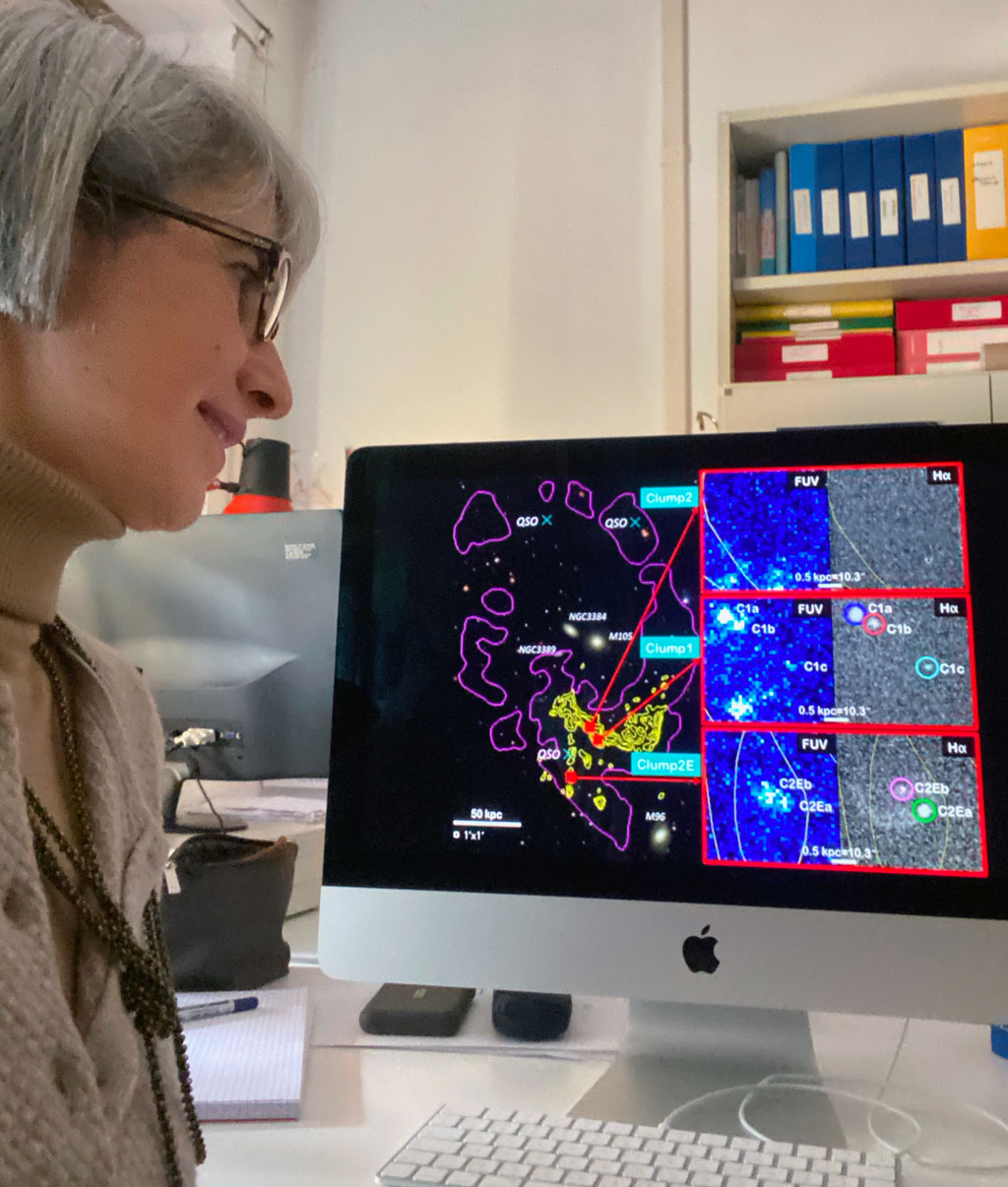 Ma ecco che, nel corso di una serie d’osservazioni condotte fra il dicembre del 2019 e il marzo del 2020 con lo spettrometro Muse del Very Large Telescope, all’osservatorio di Paranal dell’Eso, un team d’astronomi guidato da Edvige Corbelli dell’Inaf di Arcetri trova qualcosa d’inatteso: quello che forma l’anello non è tutto gas neutro, ci sono anche piccolissime regioni di idrogeno ionizzato. Almeno quattro. Dunque qualche sporadica stella in realtà pare essersi formata. E in effetti è così.