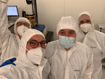 Da sinistra a destra, Mario Salatti (Asi), Nicolas Gorius (Inaf Catania & Inaf Iaps), Massimo Marinai e Andrea Novi (Leonardo) presso i laboratori High Space Technology di Prato. Crediti: Nicolas Gorius