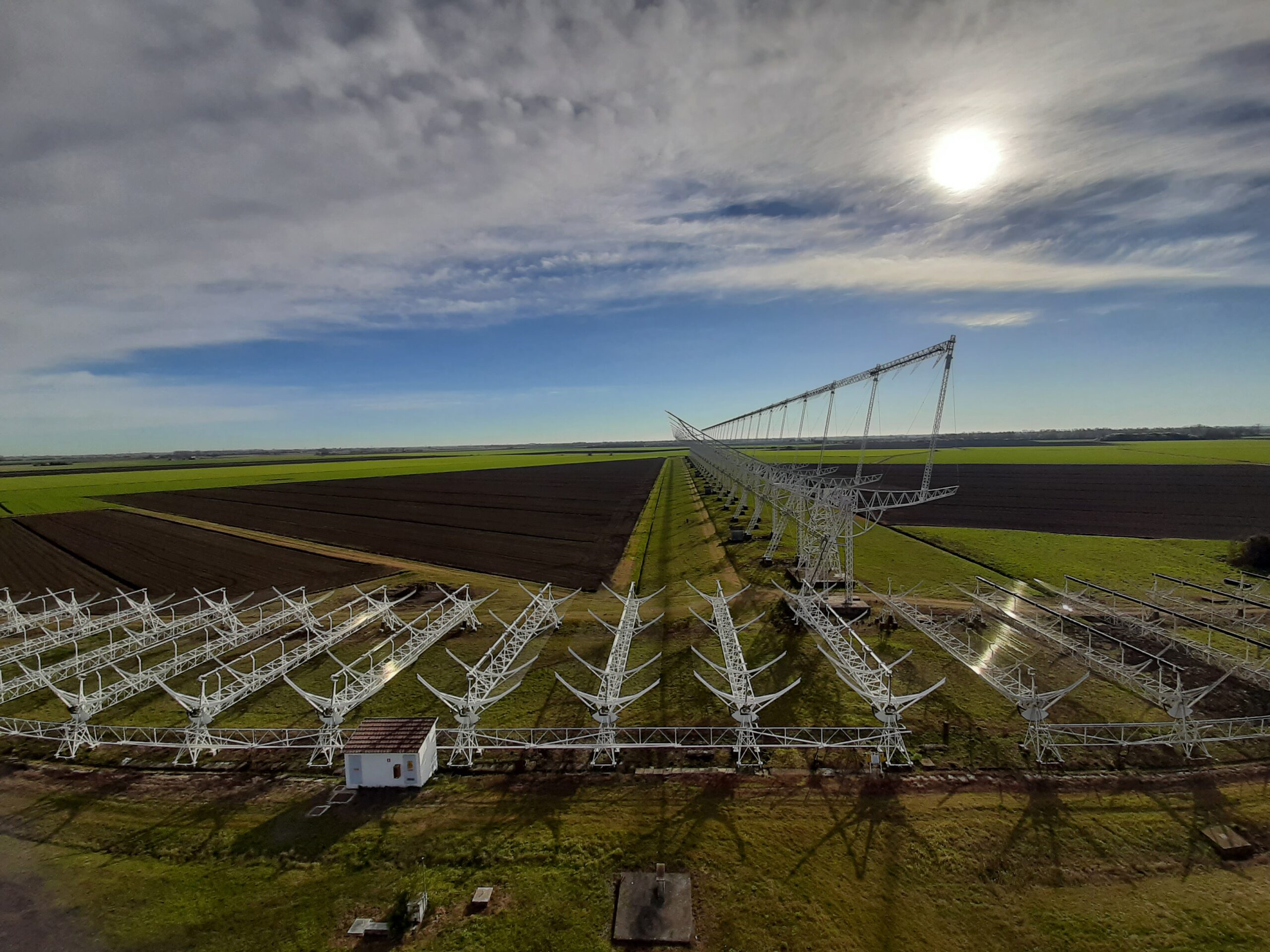 In primo piano, alcune antenne del ramo nord-sud della Croce del Nord; in lontananza, le antenne del ramo est-ovest. Crediti: G. Bianchi