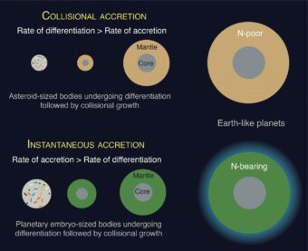 In pratica, secondo questo studio, durante la formazione di un pianeta si potrebbero verificare due distinte situazioni, una in cui la velocità di differenziazione del protopianeta è maggiore della velocità con cui esso accresce materia e un’altra in cui, viceversa, è la velocità con cui il protopianeta accresce materia a essere maggiore della velocità di differenziazione. Nel primo caso il pianeta risultate sarà povero di composti volatili, poiché i suoi strati non riescono a trattenerli. Nel secondo caso, al contrario, si possono formare pianeti simili alla Terra, contenenti azoto e altre molecole volatili essenziali per la vita, in quanto il protopianeta ha il tempo di accumularle prima di differenziarsi in un pianeta con tutti i suoi strati costituenti.