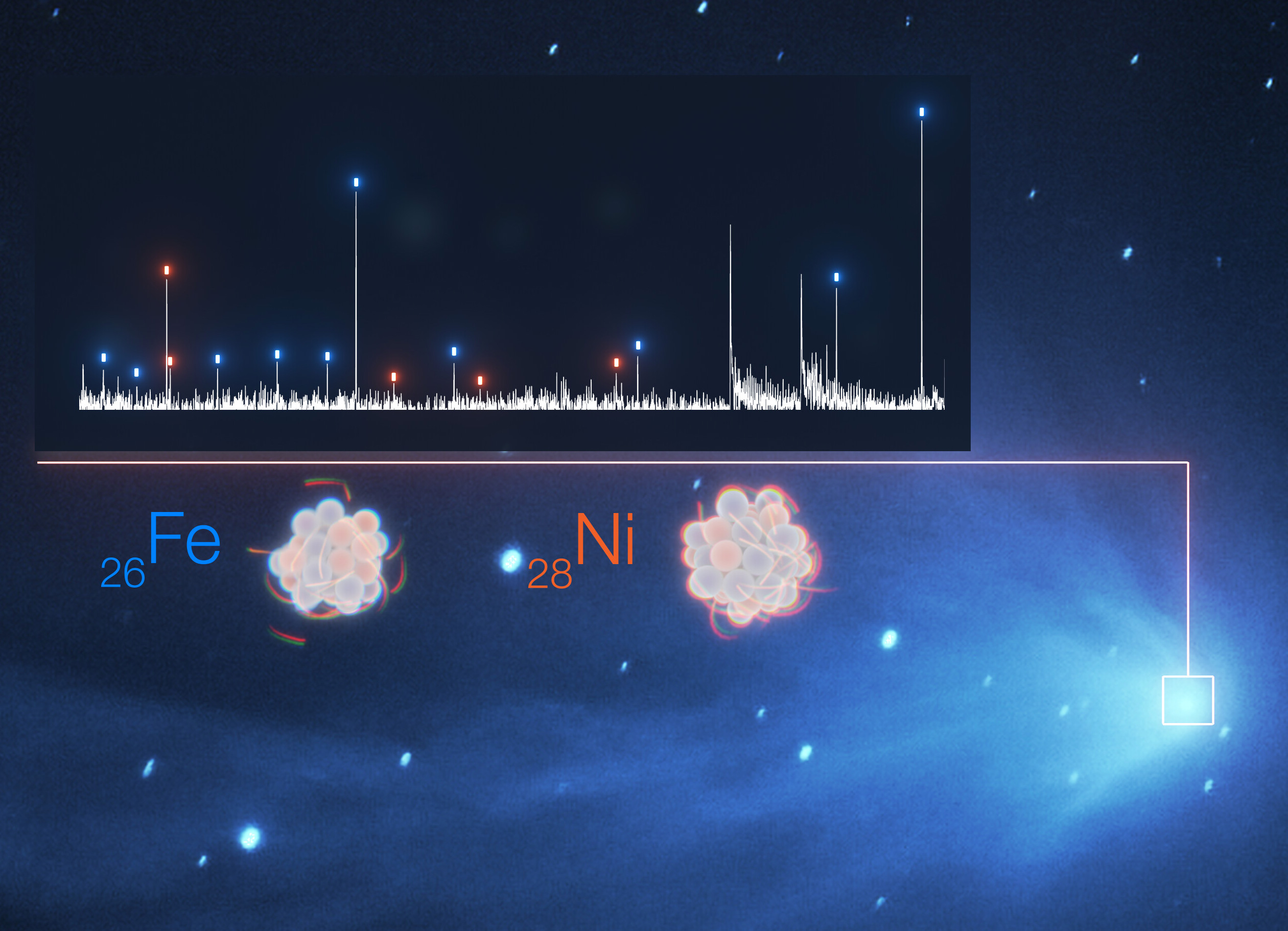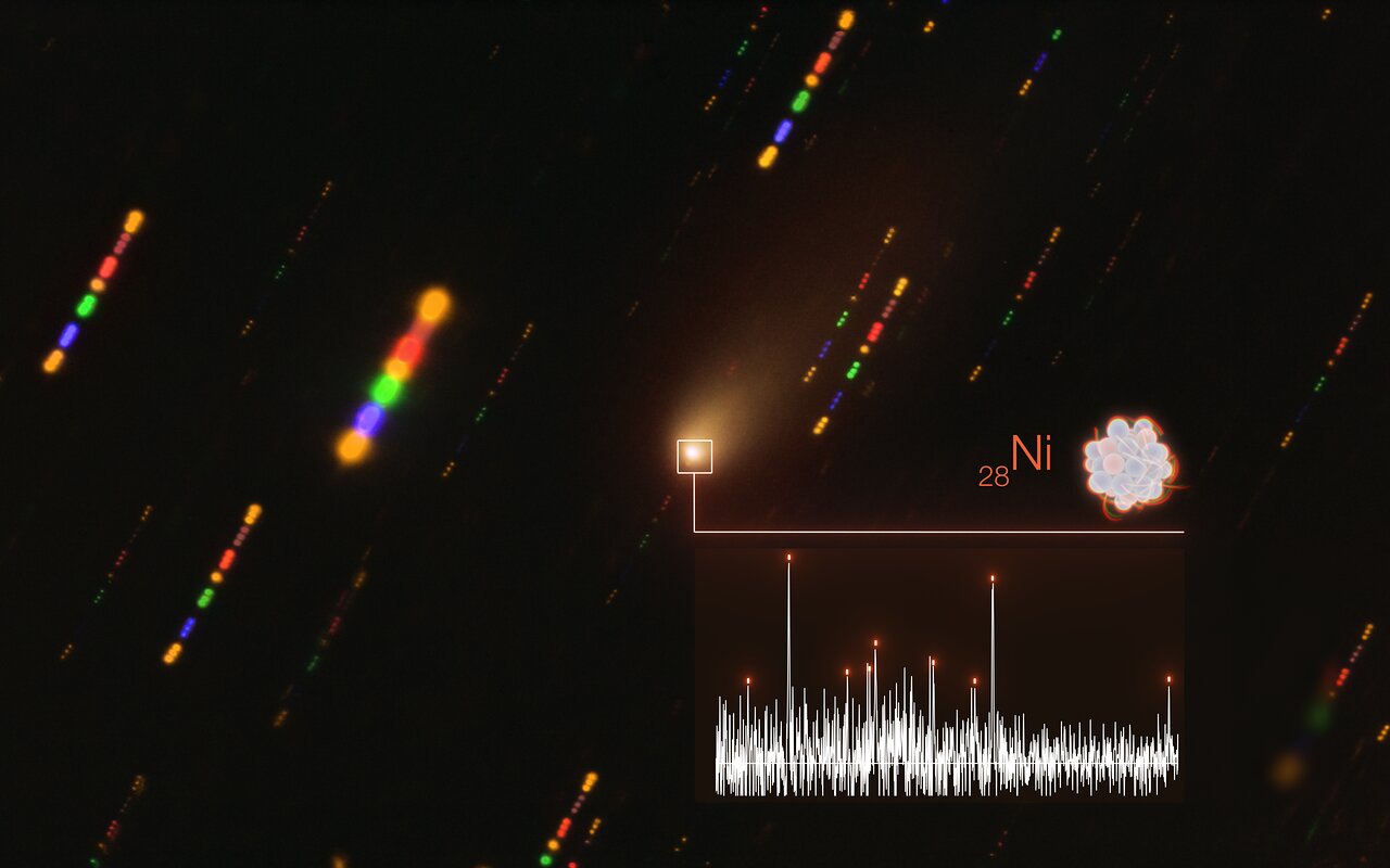 L’equipe belga aveva individuato linee spettrali deboli e non identificate nei dati Uves e, a un esame più attento, ha notato che indicavano la presenza di atomi neutri di ferro e nichel. Un motivo per cui gli elementi pesanti sono stati difficili da identificare è che sono presenti in quantità molto piccole: l’equipe stima che per ogni 100 kg di acqua nell’atmosfera delle comete ci sia solo 1 g di ferro e circa la stessa quantità di nichel.