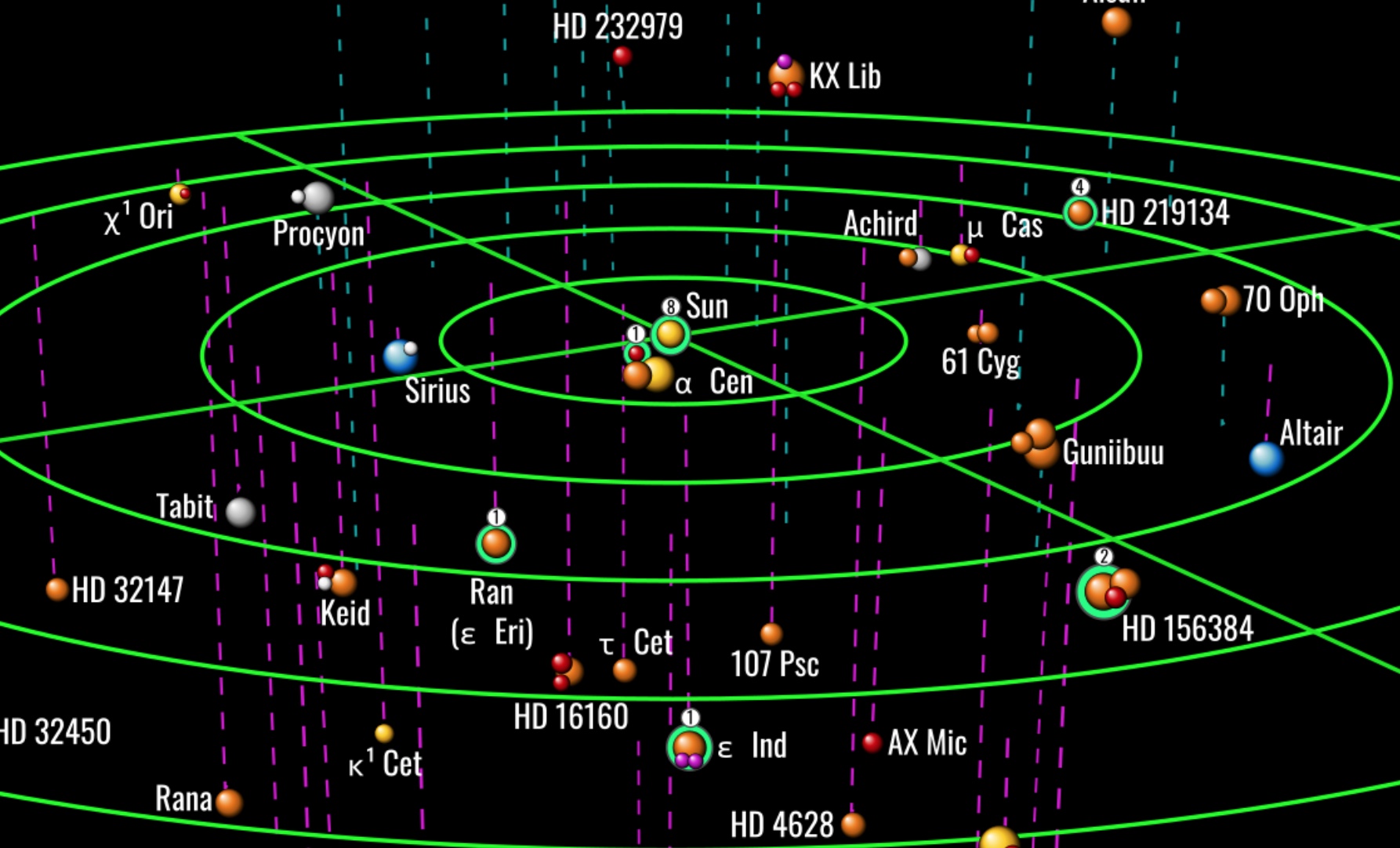 Gif animata con tutti gli oggetti entro 10 parsec (cliccare per ingrandire). Crediti: galaxymap.org (su Twitter: @galaxy_map)