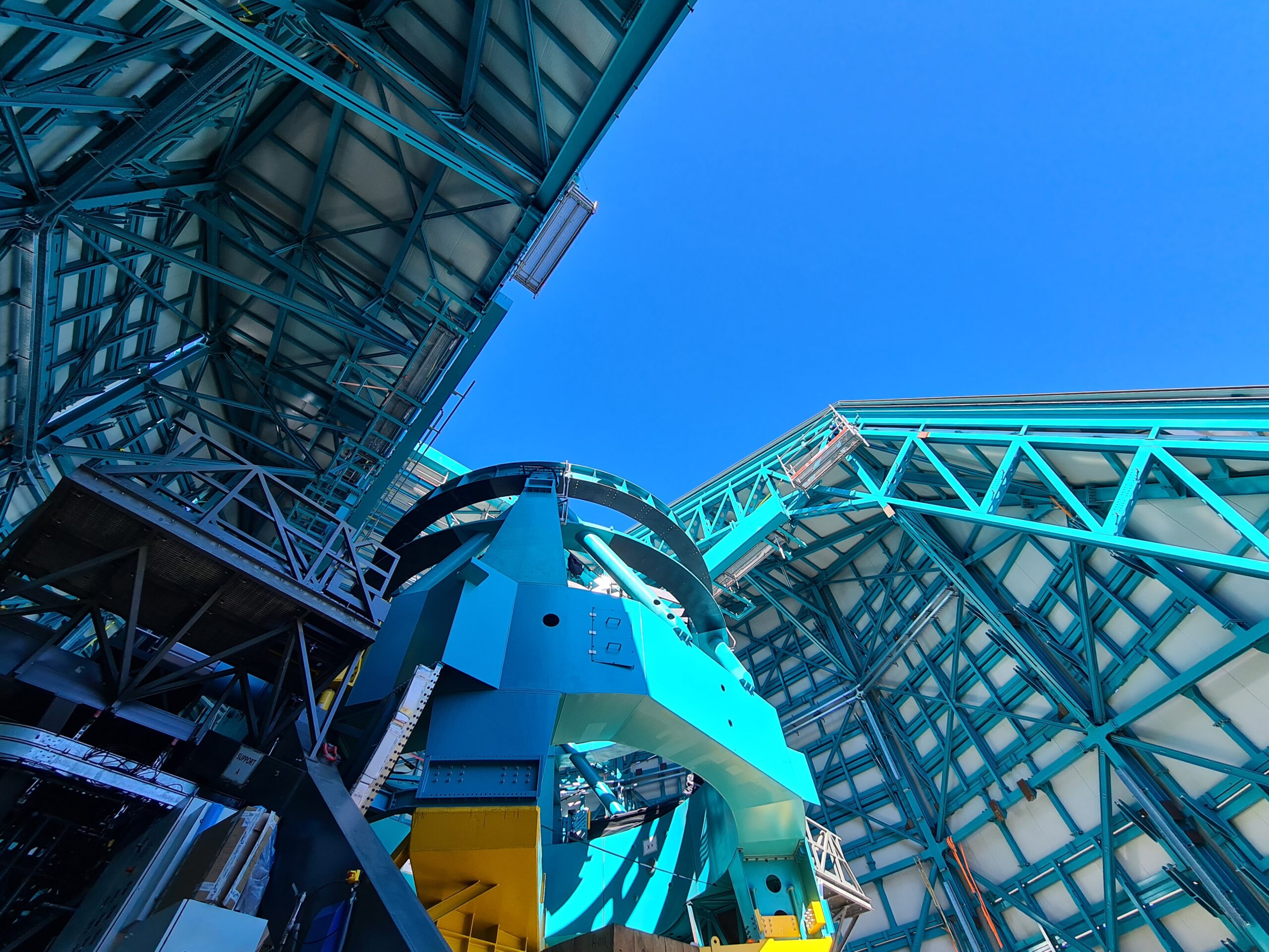 La cupola aperta del Rubin Observatory durante i lavori, nell’aprile 2021. Crediti: Rubin Obs/Nsf/Aura