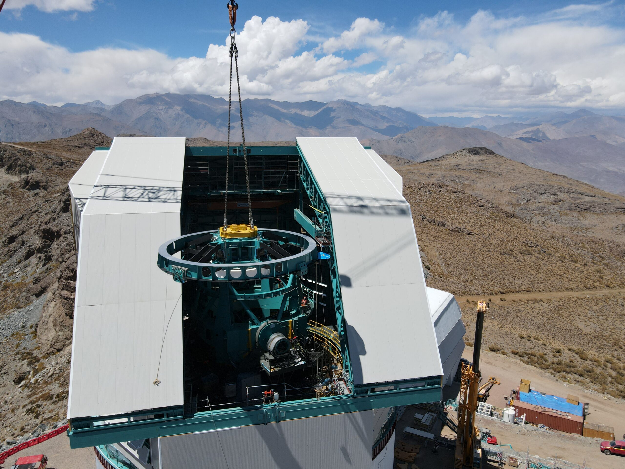 Anche se rallentati dalla pandemia, continuano i lavori del Vera C. Rubin Observatory, facility astronomica statunitense attualmente in costruzione nel Cile centro-settentrionale, sulla cresta del Cerro Pachón, ai piedi delle Ande. L’osservatorio, che sarà dotato di un telescopio da 8,4 metri e una fotocamera digitale di circa 3,2 gigapixel – la più grande al mondo – ha visto nel mese di febbraio una serie di attività incentrate intorno al rivestimento della cupola. È andato avanti anche l’assemblaggio della montatura del telescopio, culminato all’inizio di marzo con l’installazione della sua parte superiore, che pesa circa 28 tonnellate ed è stata calata attraverso la cupola mediante una gigantesca gru da 500 tonnellate.