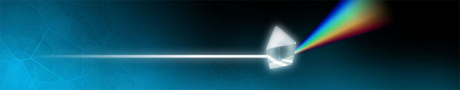 Quando l’intero spettro della luce visibile viaggia attraverso il vetro di un prisma, le lunghezze d’onda vengono separate nei colori dell’arcobaleno. Crediti: Nasa