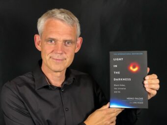 L’astrofisico Heino Falcke con l’edizione inglese del suo libro, “Light in the Darkness: Black Holes, the Universe, and Us”