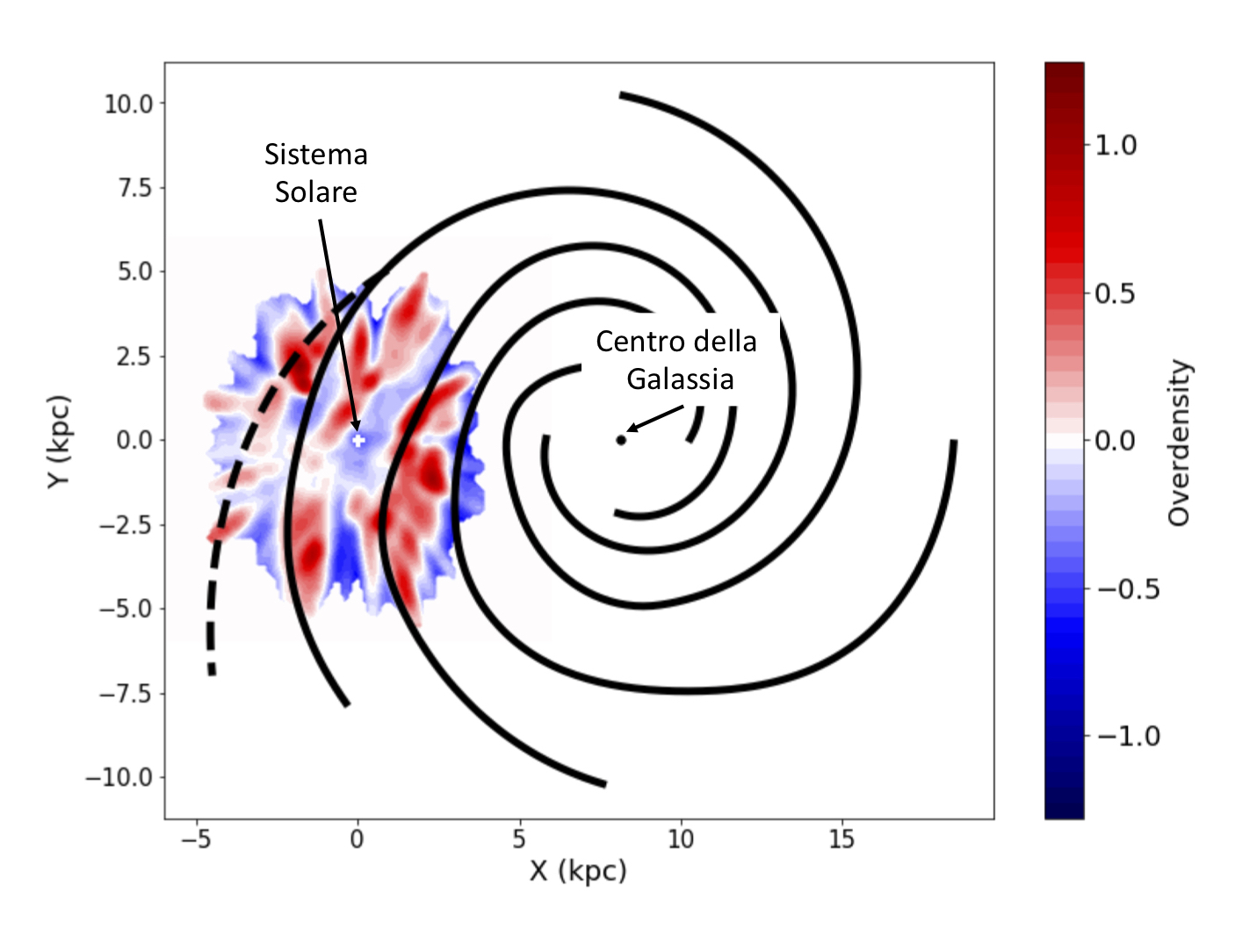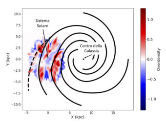 Lo studio si basa sul più grande campione di stelle giovani – circa 600mila – mai usato per realizzare una mappa dei bracci a spirale entro 16mila anni luce dal Sole, una distanza pari a circa un sesto del diametro della Via Lattea, che misura 100mila anni luce. Analizzando la distribuzione spaziale delle popolazioni di stelle giovani nel disco della galassia, il team ha creato mappe delle zone più o meno ricche di stelle rispetto alla densità media. Le zone più dense, dette anche “sovradensità”, appaiono organizzate in maniera coerente, tracciando i segmenti dei bracci a spirale più vicini al Sistema solare.
