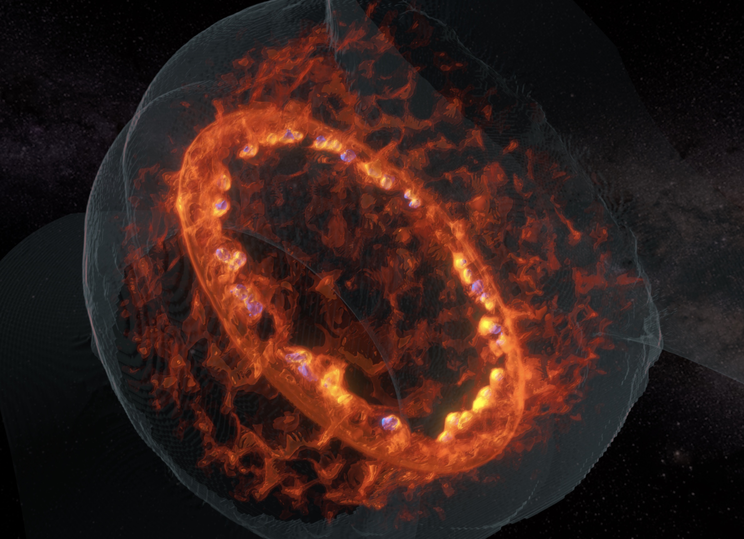 L’esperimento ha dimostrato che le energie relativistiche a cui sono accelerate le particelle dallo shock surfing acceleration sono sufficienti a innescare un ulteriore processo – noto come diffusive shock acceleration e non riprodotto dall’esperimento – in grado di portare le particelle a valori di energia tipici dei raggi cosmici. «Con gli esperimenti di laboratorio», aggiunge infatti un altro dei coautori, l’astrofisico Salvatore Orlando dell’Inaf di Palermo, «siamo riusciti a ricreare, in scala, condizioni fisiche estremamente simili a quelle che si osservano in alcuni resti di supernova, mostrando che il processo di surfing può innescare il meccanismo di accelerazione dei raggi cosmici in queste sorgenti». Infine, sia l’esperimento che le simulazioni hanno dimostrato l’importanza del campo magnetico, senza il quale non è possibile formare lo shock in espansione.