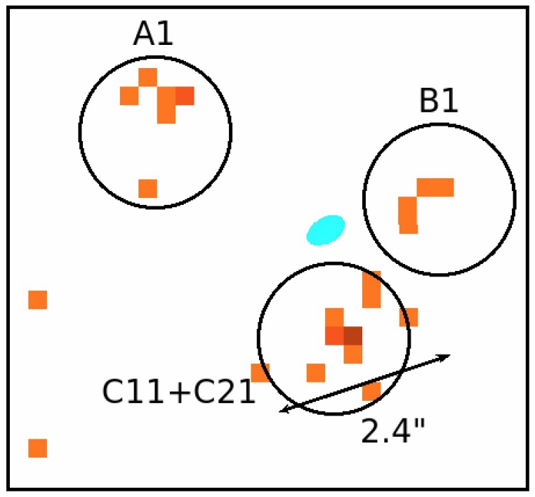 Per avvalorarla occorre però anche un segnale a raggi X, tipica firma degli Agn e dei buchi neri supermassicci che vi albergano al centro. Un segnale come quello offerto dai 24 fotoni presenti nell’archivio di Chandra. Ed è proprio confrontando le due “immagini” – quella ottenuta nel 2002 e nel 2016 con i radiotelescopi e quella, che vedete qui a fianco, formata dai fotoni intercettati da Chandra nell’aprile del 2000 – che, con l’aiuto di una complessa analisi statistica, Schwartz, Spingola e Barnacka sono ora arrivati a concludere che si tratta della stessa struttura vista in due bande diverse – quella radio e quella X, appunto. E se a prima vista i 24 fotoni sembrano raccogliersi non in due bensì in tre “insiemi“ (A1 con 7 fotoni, B1 con 4 e C11+C21 con 13), ciò è dovuto proprio alla lente gravitazionale, che amplifica e ingrandisce il segnale (vedi l’illustrazione in apertura) ma inevitabilmente finisce anche per restituire un’immagine distorta – e spesso multipla, come in questo caso – della sorgente.