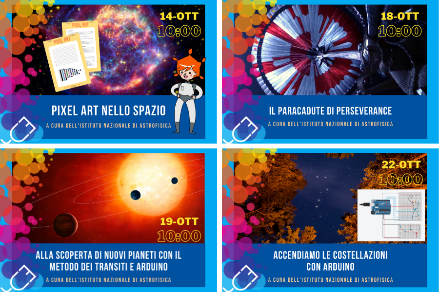 Anche quest’anno il contributo dell’Istituto nazionale di astrofisica non manca. Nella mappa globale potete già trovare diversi eventi proposti da Inaf, tra cui webinar disponibili sia in diretta, sia in differita (trovate qui la lista completa), live per la cittadinanza e la presenza al Festival della Scienza di Genova del CodyMaze Astrofisico di Inaf. Tutte queste attività sono state sviluppate dal gruppo di didattica innovativa di Inaf dedicato al coding, coordinato da Maura Sandri, e le trovate nella piattaforma Play.