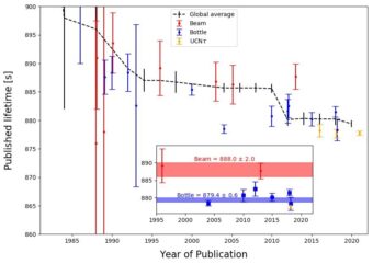 I fisici hanno passato decenni a cercare di misurare l’esatto tempo di vita di un neutrone utilizzando fondamentalmente due tecniche, una che prevede di intrappolare i neutroni in una “bottiglia” e tracciare quanto tempo impiegano a decadere radioattivamente (metodo della bottiglia), l’altra consiste nello sparare un fascio di neutroni e calcolare il numero di protoni creati dal decadimento radioattivo (metodo del raggio). Ma ahimè i risultati dei due metodi non corrispondono: differiscono di circa 9 secondi, che non è poco per una particella che vive solo circa 15 minuti.