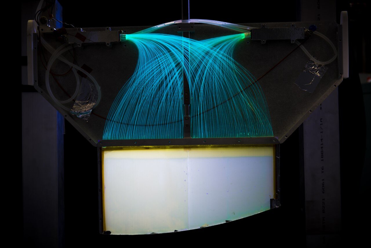 Il rivelatore di neutroni ultrafreddi ad alta efficienza impiegato nella trappola della “vasca da bagno”. Crediti: Los Alamos National Lab / Michael Pierce