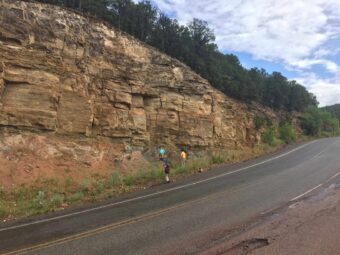 I geologi ispezionano un affioramento vicino al sito di raccolta del campione nel New Mexico. Crediti: Gunther Kletetschka