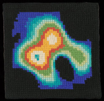 Whitman, che all’epoca lavorava presso il Center for Short-Lived Phenomena dello Smithsonian Institution a Cambridge, Massachussets, era rimasto colpito dalle immagini di alcuni resti di supernova riprese dallo strumento a raggi X a bordo del satellite Copernicus OAO-3, apparse sul numero di dicembre 1975 della rivista Scientific American. Ottenuti i dati da uno dei co-autori dell’articolo, Philip A. Charles del Mullard Space Science Laboratory, in Inghilterra, Whitman tradusse l’immagine pixel per pixel, sviluppando uno schema da ricamo che poi stampò utilizzando il Cdc-6400 del suo istituto, all’epoca il computer per applicazioni civili più potente di tutto il New England. Ormai settantenne, Payne-Gaposchkin raccolse la sfida, realizzando un lavoro di pregio artistico e scientifico mezzo secolo dopo aver rivoluzionato l’astrofisica moderna, dimostrando che il Sole consiste principalmente di idrogeno, in una dissertazione che le valse il primo dottorato in astronomia rilasciato a una donna dall’Università Harvard.