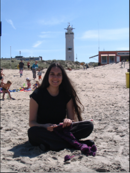 Rosaria (Sara) Bonito, ricercatrice all’Inaf di Palermo, mentre sferruzza sulla spiaggia di Noordwijk, Paesi Bassi, dopo un meeting presso il centro Estec dell’Agenzia spaziale europea