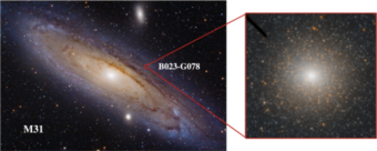 Il buco nero era nascosto all’interno di B023-G078, un enorme ammasso stellare nella vicina galassia Andromeda. A lungo ritenuto un ammasso globulare, i ricercatori sostengono che B023-G078 sia invece un nucleo spogliato, ossia un resto di una piccola galassia caduta nella galassia più grande e le cui stelle esterne sono state strappate via dalle forze gravitazionali. Ciò che resta è un minuscolo e denso nucleo in orbita attorno alla galassia più grande e, al centro di quel nucleo, si trova un buco nero.