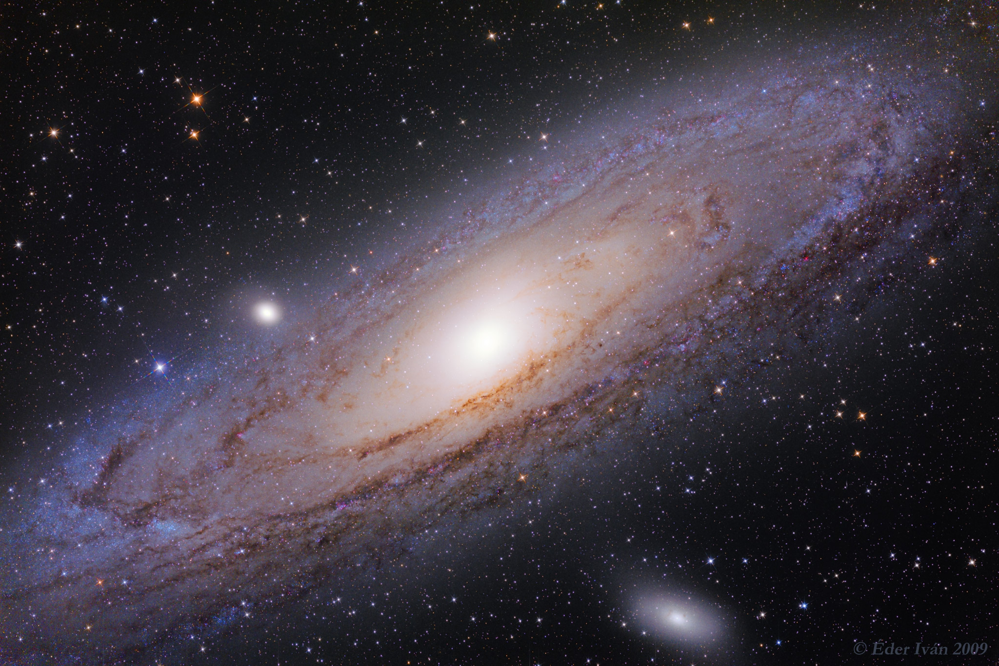 Grande il doppio della Via Lattea e in rapido avvicinamento, la Galassia di Andromeda (conosciuta anche come M31) è una galassia a spirale gigante che dista circa 2 milioni e mezzo di anni luce dalla Terra. È così grande e così vicina che si vede anche a occhio nudo, in direzione della costellazione omonima.