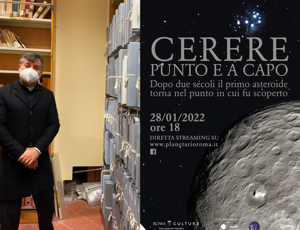 «Cosa lega il pianeta nano Cerere con Palermo e con un piccolo comune della Valtellina dal nome di Ponte? Sembra la domanda di un quiz e la risposta è breve e concisa: l’abate Giuseppe Piazzi», ricorda Fabrizio Bocchino, direttore dell’Osservatorio astronomico dell’Inaf di Palermo, fra i partecipanti alla live di venerdì prossimo. «Le incredibili vicende che hanno portato questo intrigante personaggio vissuto a cavallo fra il ‘700 e l’800 a lasciare il suo paese natale in Valtellina, a fondare l’Osservatorio astronomico di Palermo ed a scoprire il primo asteroide (oggi pianeta nano Cerere) dopo che in tanti lo avevano ipotizzato, cercato e non trovato sono degne di un romanzo e finanche di una serie tv. Molte di queste vicende sono narrate nell’ebook La fondazione dell’Osservatorio astronomico di Palermo delle colleghe Coniglio, Chinnici e Randazzo. Per la serie tv speriamo che qualcuno prima o poi ci penserà, ma nel frattempo proveremo a raccontare un pezzo di quella storia in occasione del ritorno di Cerere nella stessa zona di cielo dove si trovava quando Piazzi lo scoprì. Scoprendo ad esempio che, come spesso accade, si trova qualcosa proprio quando non la si cerca affatto…».