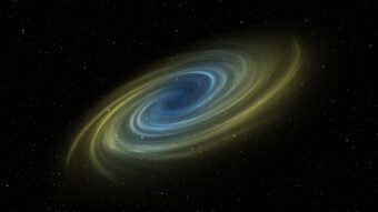 «Un’altra evidenza emersa dalla nostra ricerca è che le dimensioni della regione in cui la materia oscura rimane costante aumenta con il tempo. È un processo molto lento, ma inesorabile», conferma Salucci. Una possibile spiegazione? «La più semplice è che, all’inizio, quando la galassia si è formata, la distribuzione della materia oscura nell’alone sferico sia quella predetto della teoria Lambda-Cdm, con un picco di densità al centro. Successivamente, si formerebbe il disco di stelle che caratterizza le galassie a spirale, circondato, appunto da un alone composto di particelle oscure molto denso. Con il passare del tempo, per effetto dell’interazione da noi teorizzata, le particelle verrebbero catturate dalle stelle o espulse nelle regioni periferiche della galassia». Questo processo creerebbe nell’alone di materia oscura una zona a densità costante, di dimensioni che crescono proporzionalmente al tempo e alla fine raggiungono quelle del disco stellare, come descritto nell’articolo su Astronomy and Astrophysics.