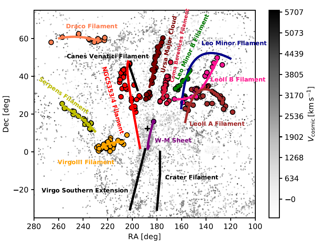 Nell’universo, le galassie sono distribuite lungo quella che comunemente viene chiamata ragnatela cosmica, una complessa rete di filamenti composta da materia ordinaria e materia oscura. Dove i filamenti si intersecano, tendono a formarsi ammassi di galassie – gruppi di centinaia o addirittura migliaia di galassie legate l’una all’altra dalla forza di gravità. Sono gli ammassi più grandi e densi dell’universo e sono oggetto di molte ricerche da parte degli astrofisici. Ma il modo preciso in cui i filamenti contribuiscono all’evoluzione galattica non è ben chiaro.