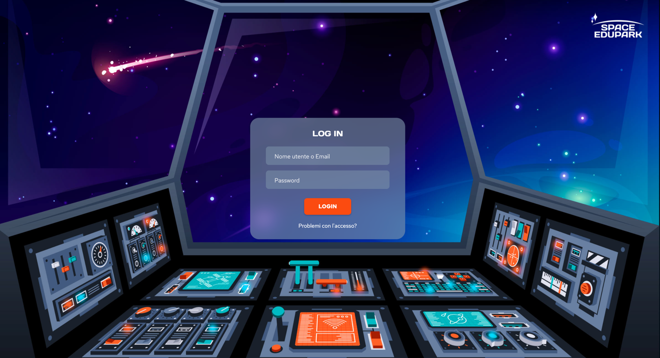Schermata iniziale della piattaforma SpaceEduPark. Crediti: Esa/ReMedia