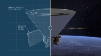 Il telescopio spaziale della Nasa SphereX, che ha appena passato la Critical design review e si avvia verso la costruzione. Per agire sullo slider, occorre cliccare sull’immagine per andare alla pagina della Nasa. Crediti: Nasa/Jpl-Caltech