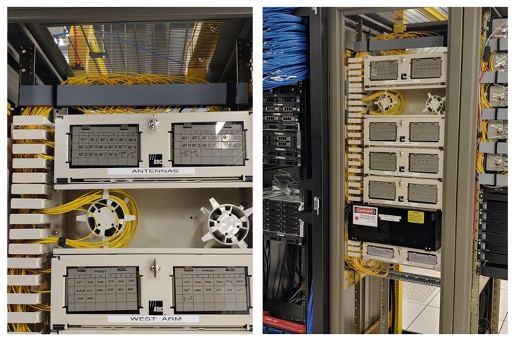 Risultato finale del lavoro. Gli amplificatori e gli splitter in fibra ottica sono ora installati per tutte le ventisette antenne del Vla. Crediti: Seti Institute