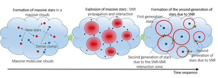 Le osservazioni astronomiche non hanno una risoluzione spaziale sufficientemente alta per osservare questi processi e le simulazioni numeriche non sono in grado di gestire la complessità dell’interazione tra nubi e resti di supernova. Pertanto, l’attivazione e la formazione di nuove stelle in questo modo rimane per lo più avvolta nel mistero.