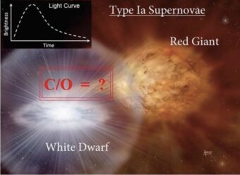La supernova di tipo Ia emette una quantità di luce pari a quella di un’intera galassia, che dipende anche dal rapporto carbonio-ossigeno, non ancora noto con precisione. Un metodo di recente sviluppo promette di misurare questo rapporto. Crediti: Robin Smith, Nature Portfolio Astronomy Community