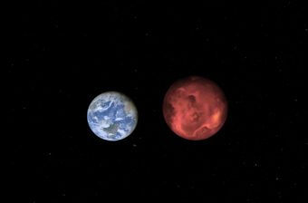 Il confronto in dimensione tra TOI-1807b e la Terra. L’immagine di TOI-1807b è una rappresentazione artistica. Crediti: Nardiello/Nasa – Eyes-on-exoplanets