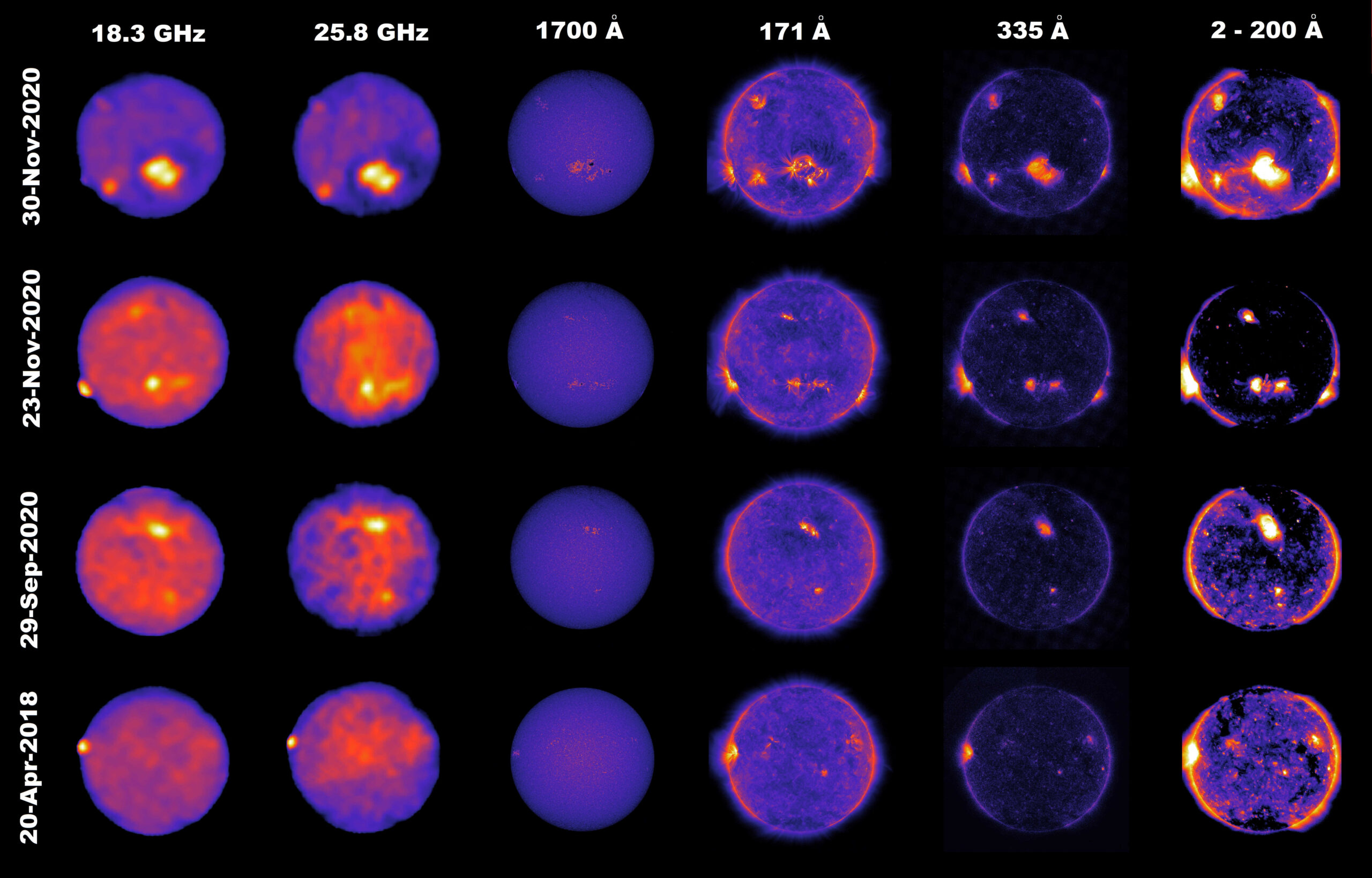 Immagini radio-solari SunDish a diverse frequenze in comparazione con mappe nei raggi X e nella banda ultravioletta. Lo studio per immagini del Sole consente di analizzare diversi strati dell’atmosfera solare che rivelano una complessa e tumultuosa fenomenologia che sarà sempre più intensa e interessante nell’appropinquarsi al periodo di massima attività solare previsto per il 2024-2026. Crediti: Inaf/Nasa/Jaxa