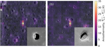 Immagini termiche catturate dal Diviner per due pozzi lunari. Ogni pixel rappresenta circa 250 m di ampiezza sulla superficie lunare. Crediti: Horvath & Co.