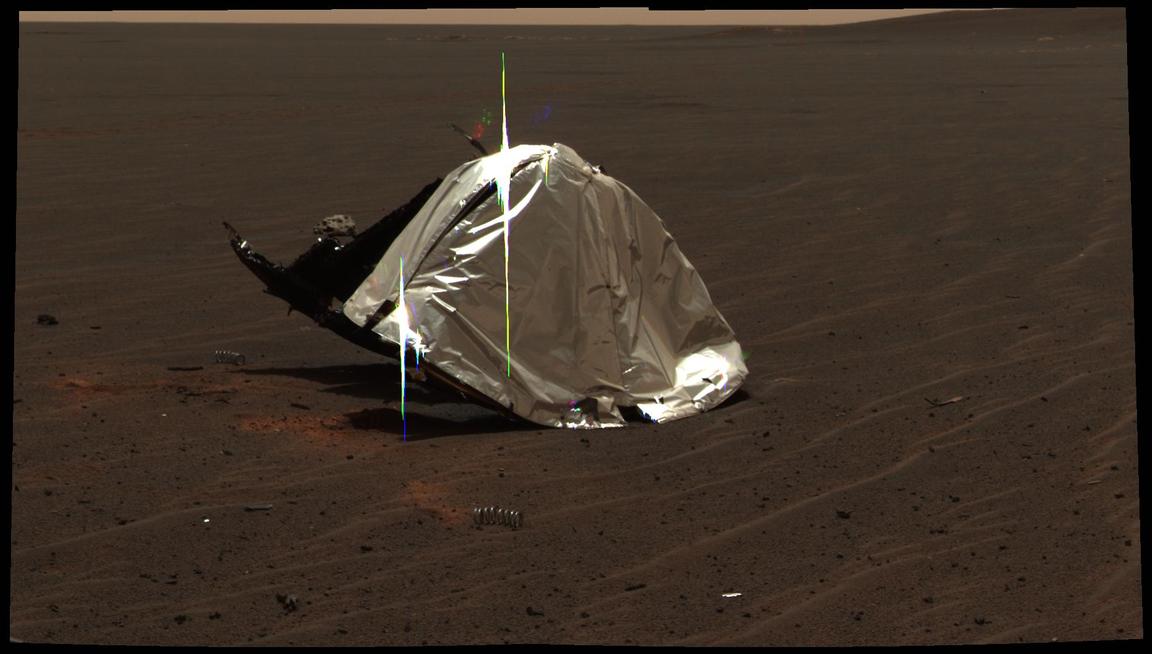 Parte di quell’hardware è stato successivamente ripreso, sia da Perseverance stesso che da Ingenuity. Ad esempio, al Sol 414 (19 aprile 2022), l’elicotterino marziano ha acquisito l’immagine a colori del paracadute e del guscio posteriore, riportata in questa pagina, posti a circa un chilometro a nord-ovest del sito di atterraggio.